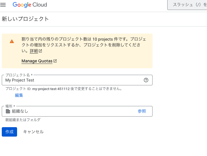 Google Cloud Console にアクセスし、新しいプロジェクトを作成。